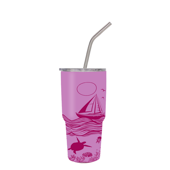 Its 30oz capacity is ideal for staying hydrated on beach days, road trips, or simply enjoying your downtime. Whether you're planning your next tropical escape or just looking for a little slice of paradise, this tumbler is the perfect companion for vacation lovers who live for relaxation and adventure.